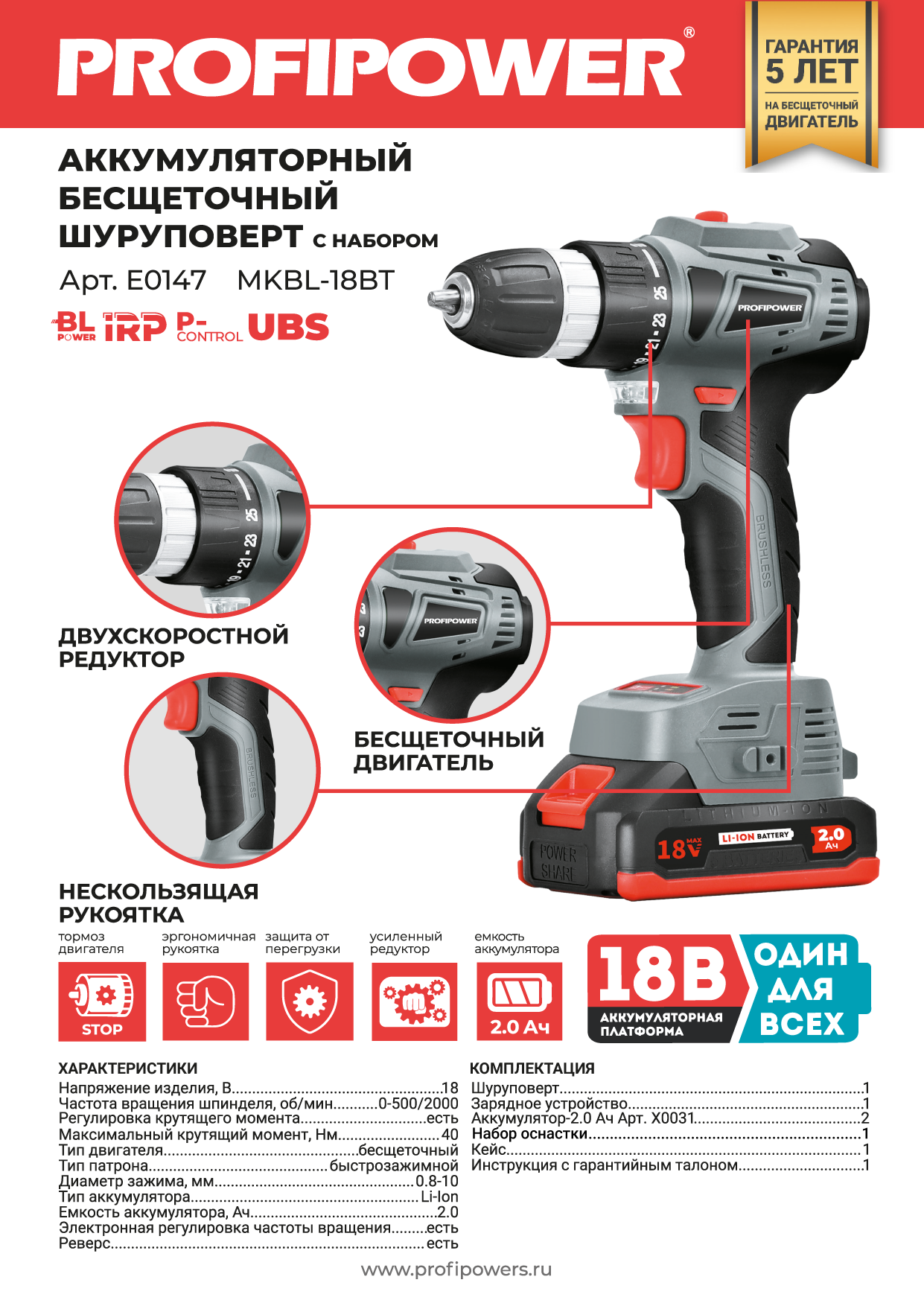 Универсальная модель с бесщеточным двигателем для решения любых задач сверления и закручивания.