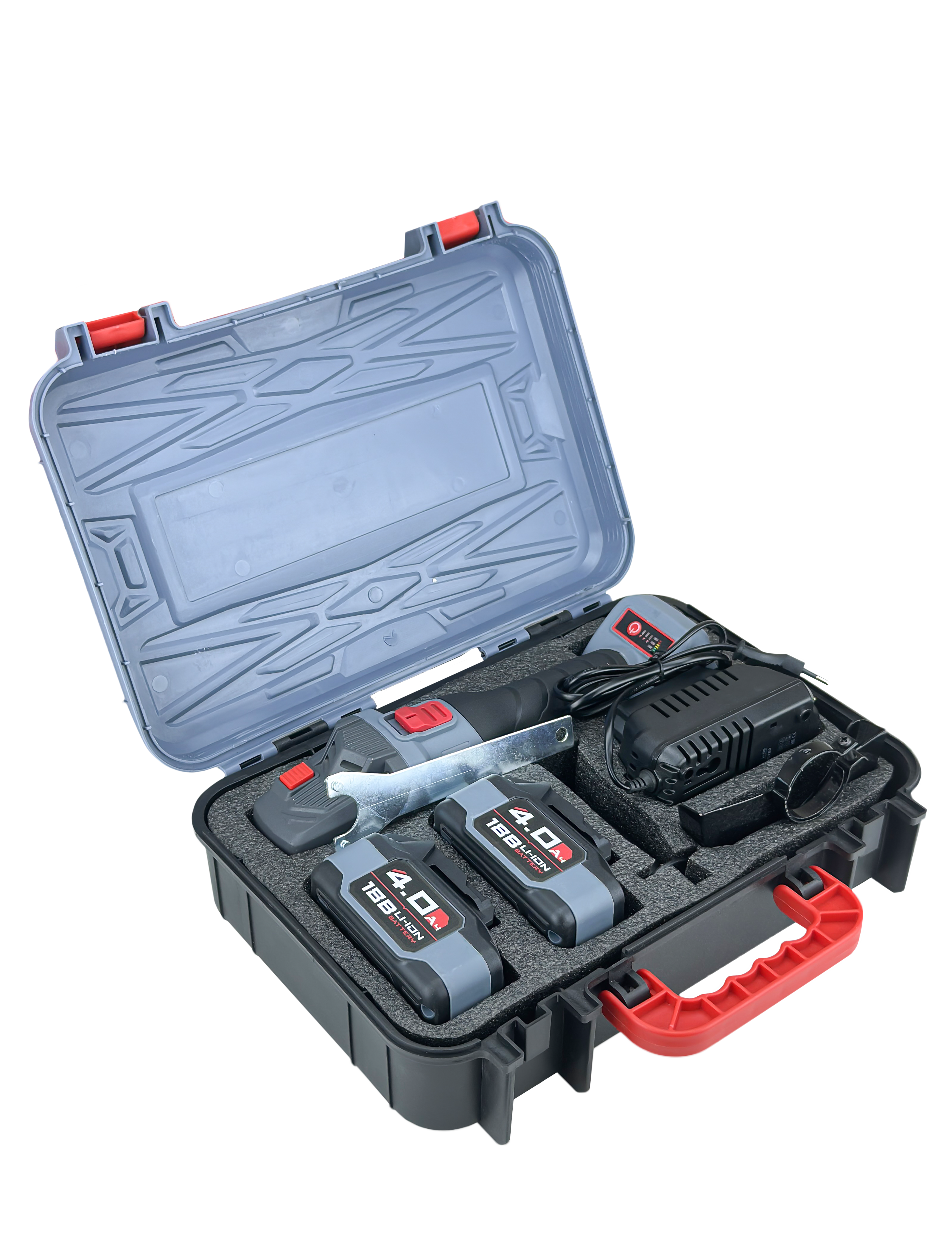 Суперкомплект: углошлифовальная машина, два аккумулятора 4000 mAh серии MK, быстрое зарядное устройство, ключ, дополнительная рукоятка, полимерный кейс.