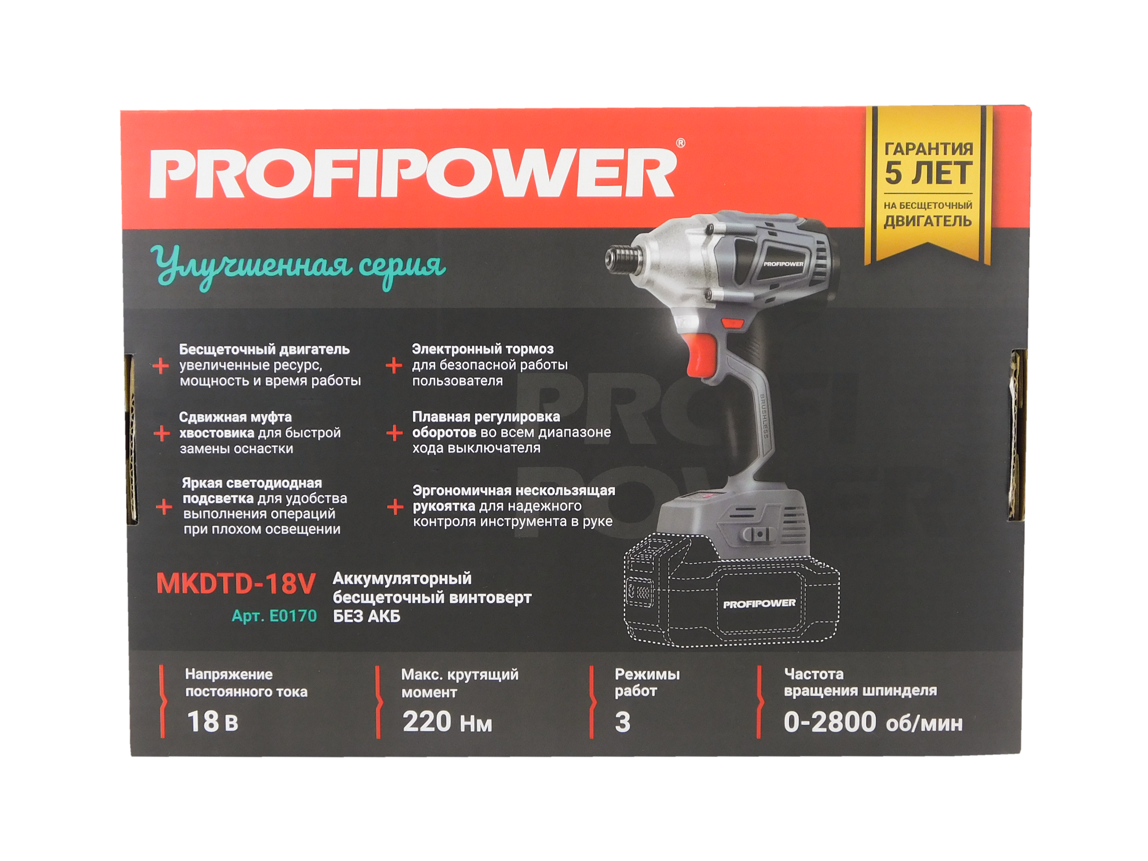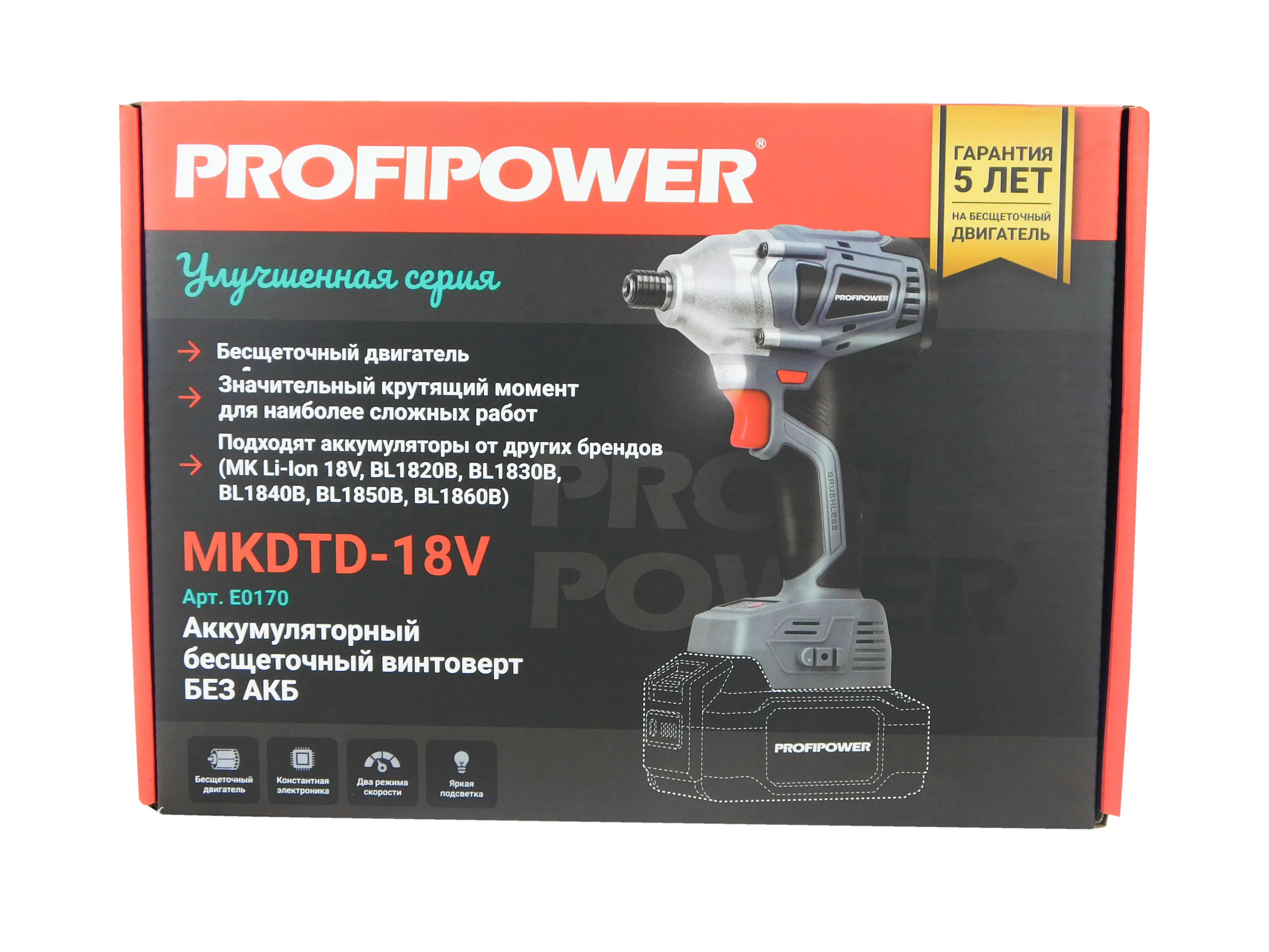Аккумуляторный винтоверт беcщеточный импульсный E0170 PROFIPOWER MKDTD-18V