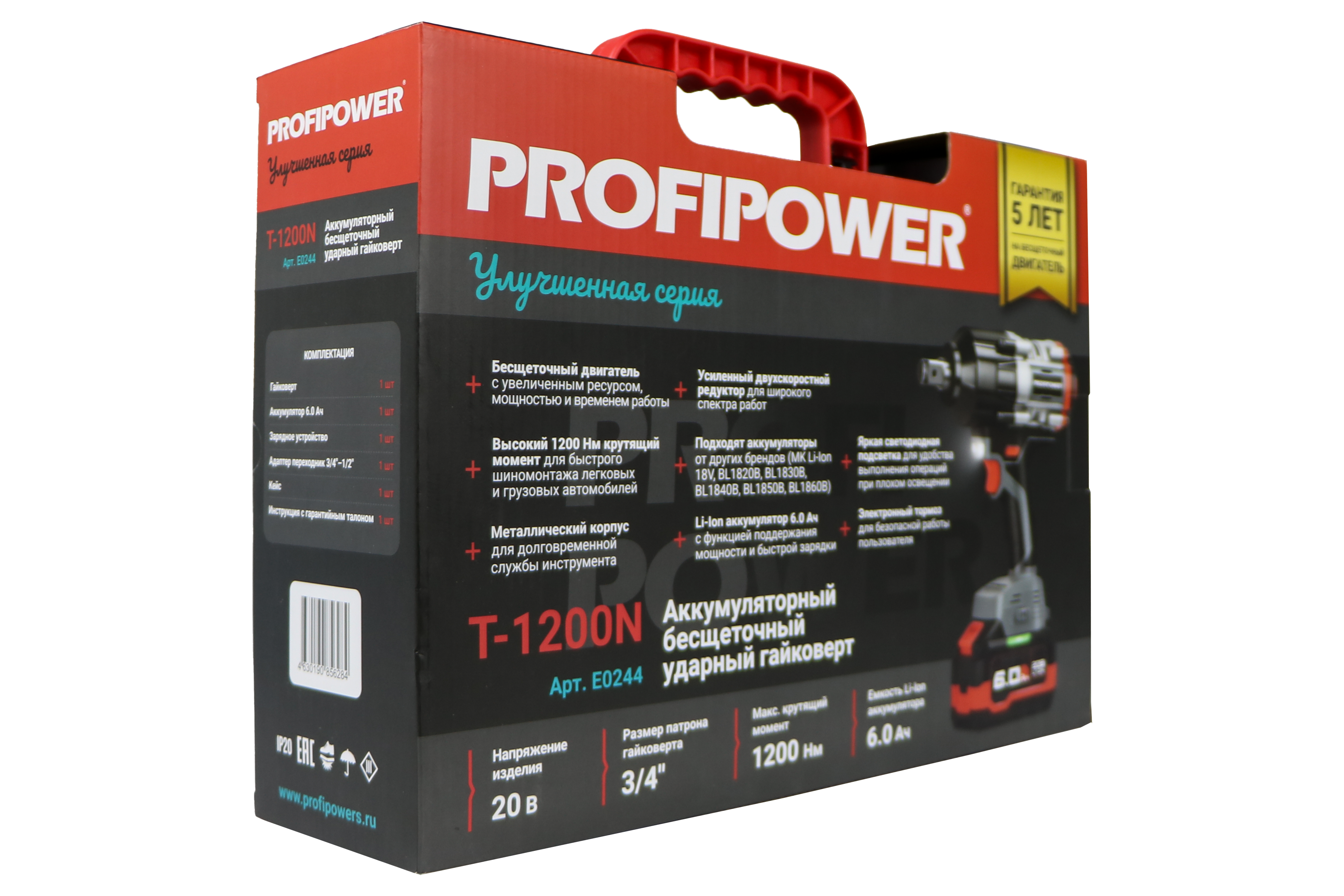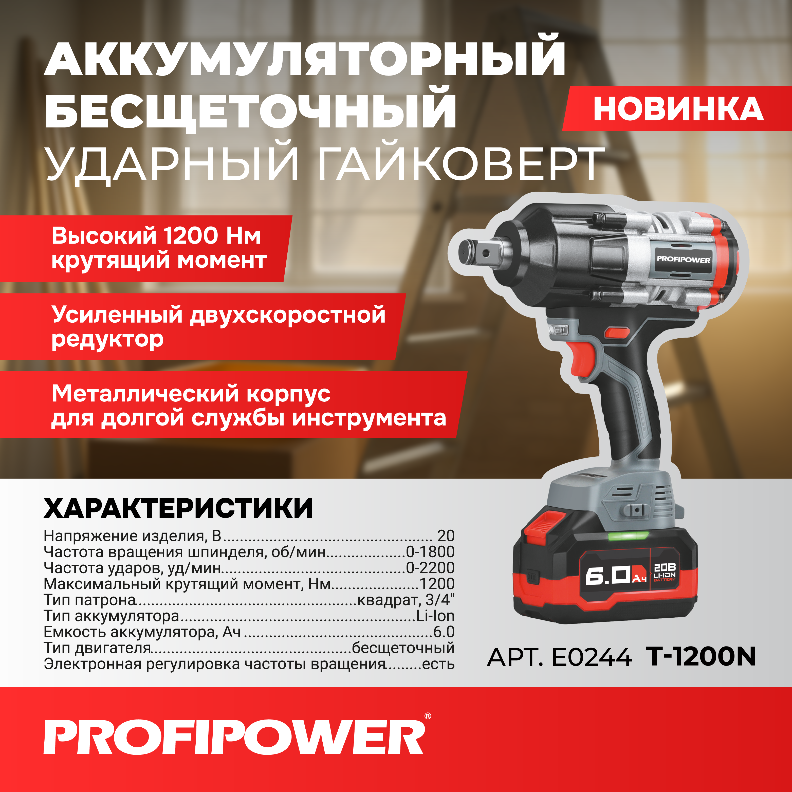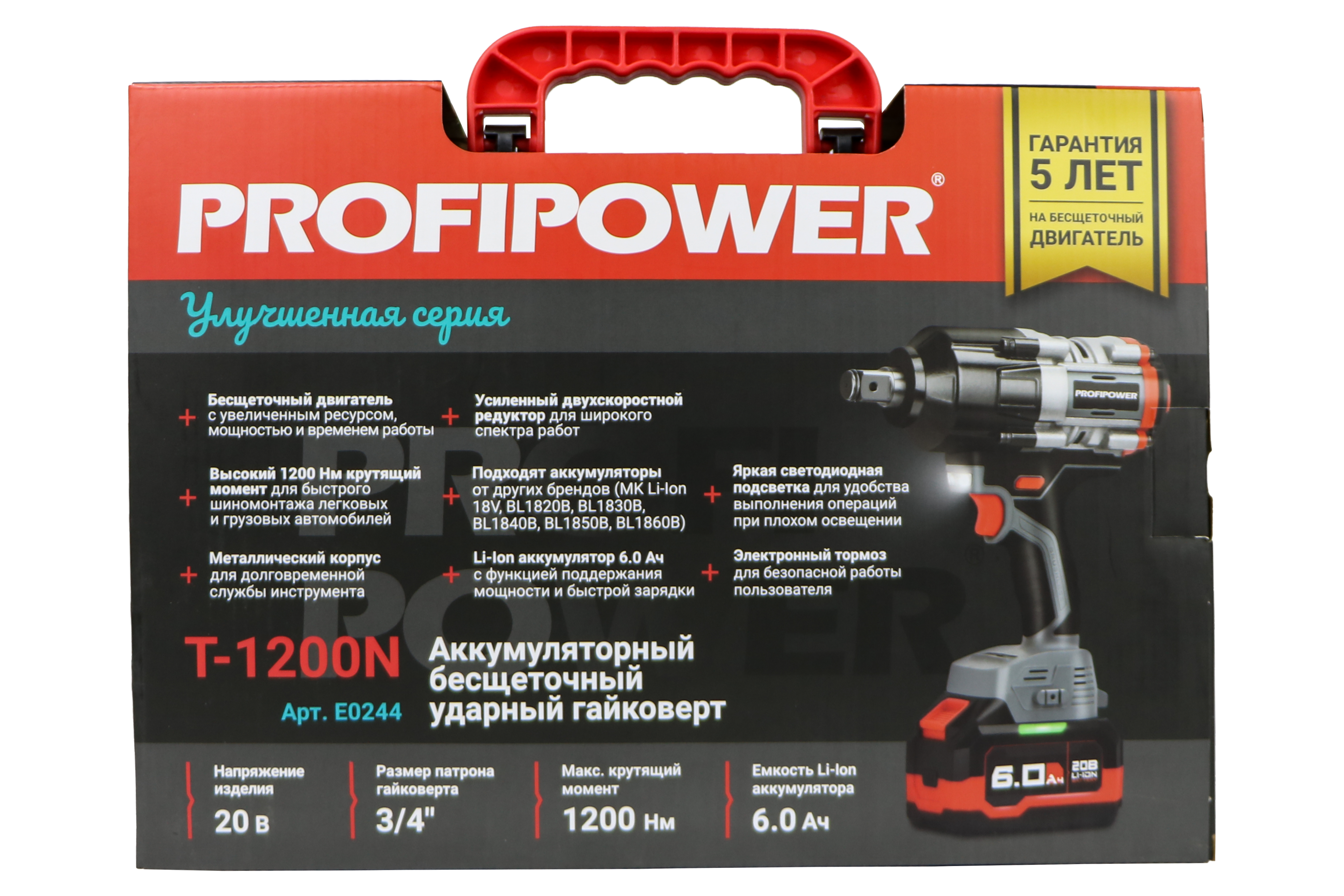 Держатель типа Квадрат 3/4" позволяет использовать широкий спектр гаек и болтов различных диаметров, так же в комплектацию входит ударостойкий переходник с 3/4" на 1/2". Бесщеточная конструкция гайковерта предупреждает возможные травмы во время работ, что особенно важно при выполнении сложной работы в тесном пространстве.