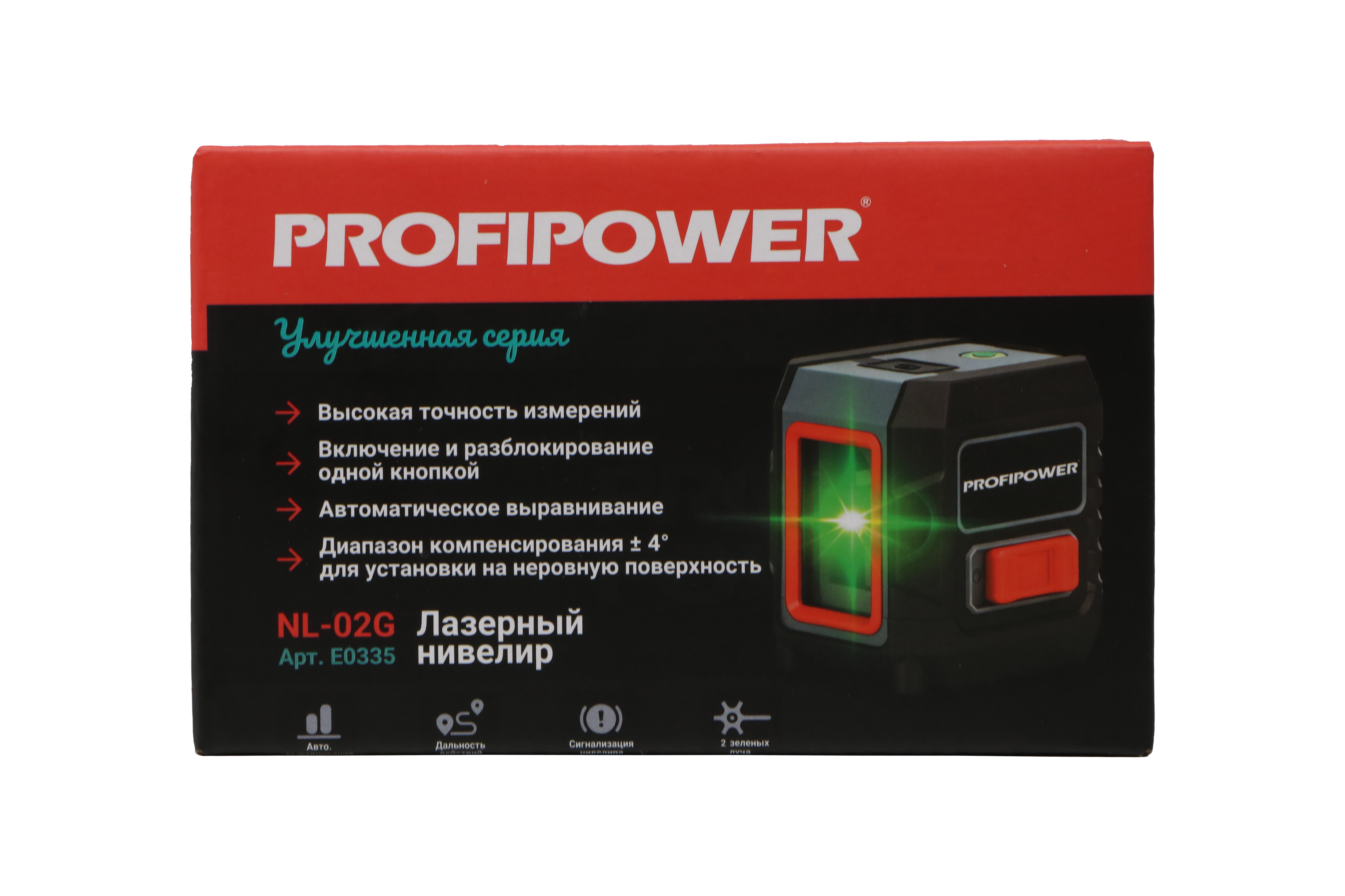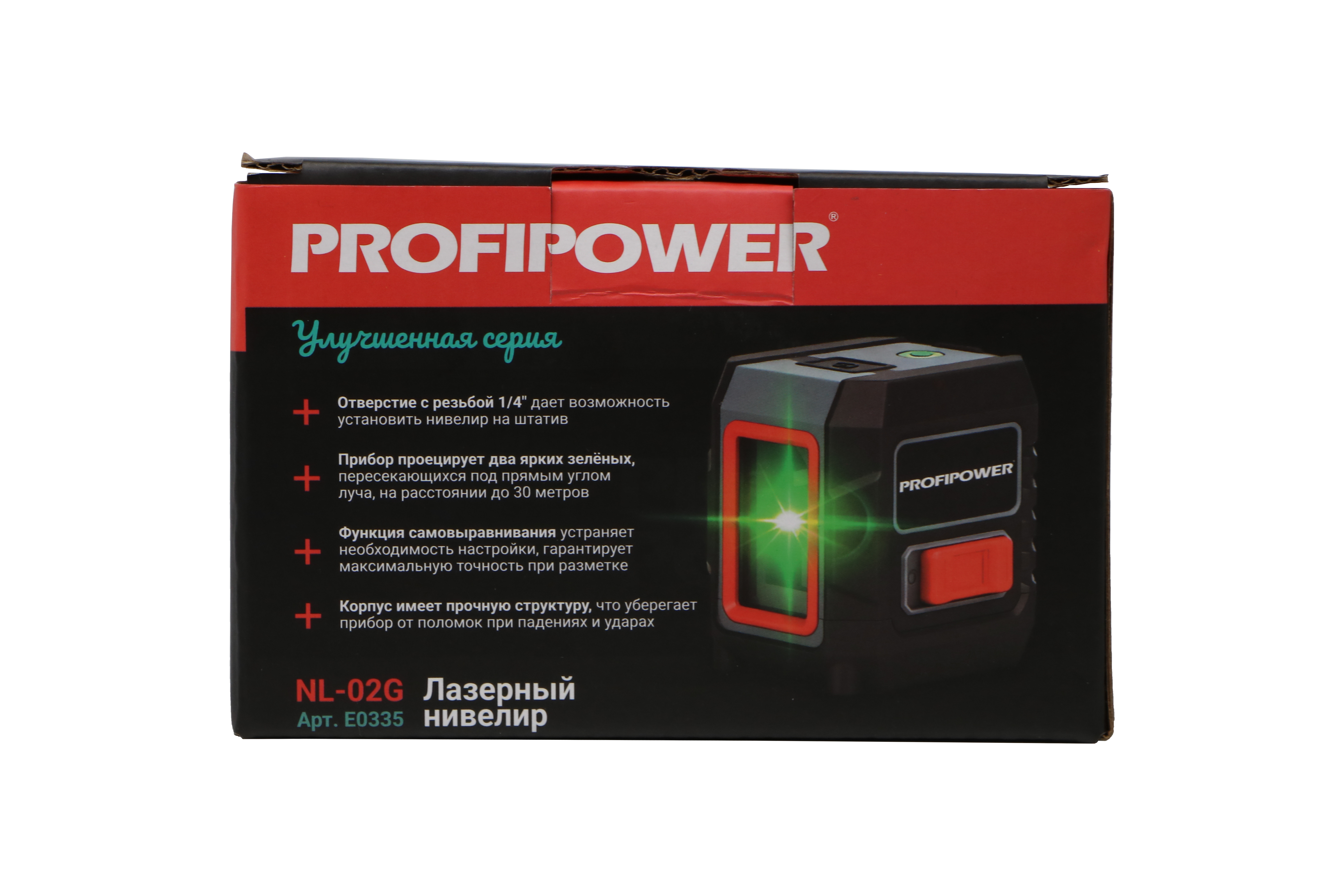 Лазерный нивелир E0335 PROFIPOWER NL-02G — высокоточный строительный прибор с двумя лучами и зеленым лазером
