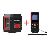 Лазерный нивелир E0335 PROFIPOWER 2 лучей NL-02G + Дальномер лазерный E0268 PROFIPOWER 60 метров PLD-60