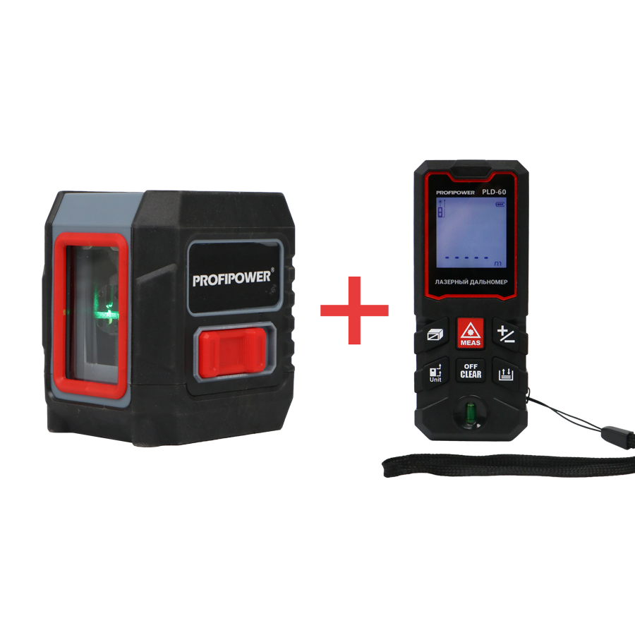 —Лазерный нивелир E0335 PROFIPOWER 2 лучей NL-02G + Дальномер лазерный E0268 PROFIPOWER 60 метров PLD-60