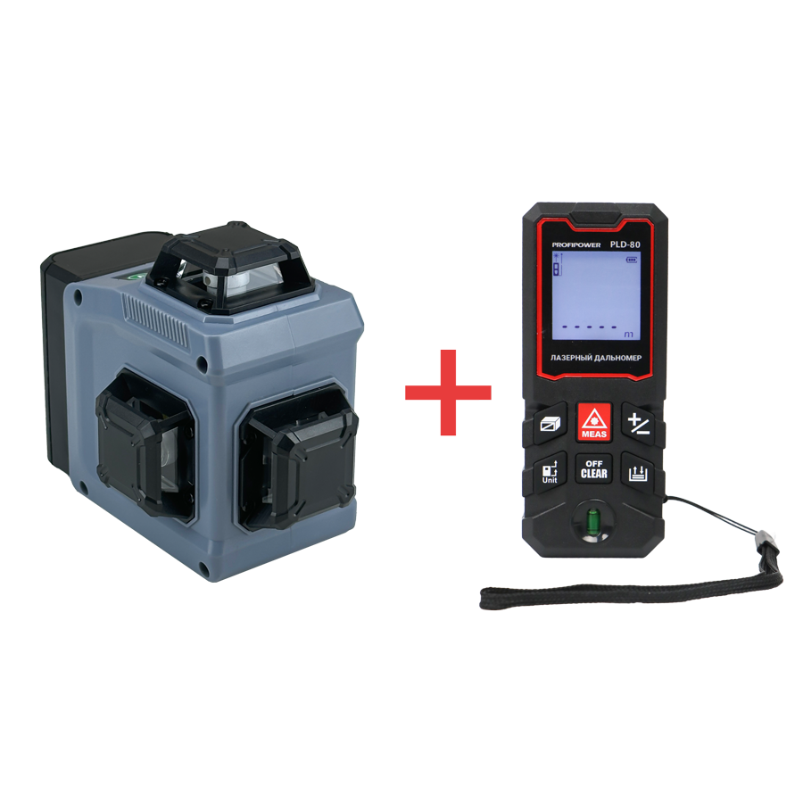 —Лазерный нивелир E0214 ProfiPower NL-12G + Дальномер лазерный E0269 PROFIPOWER 80 метров PLD-80
