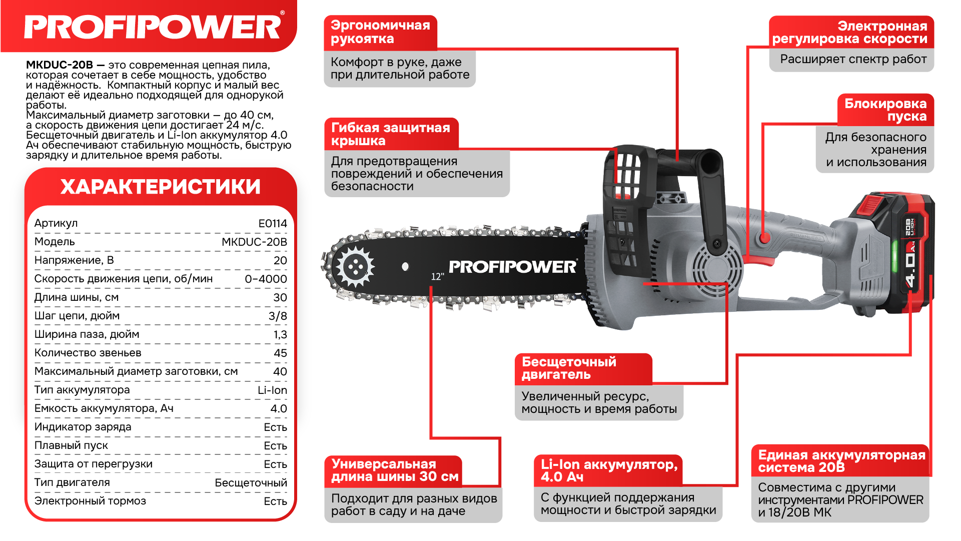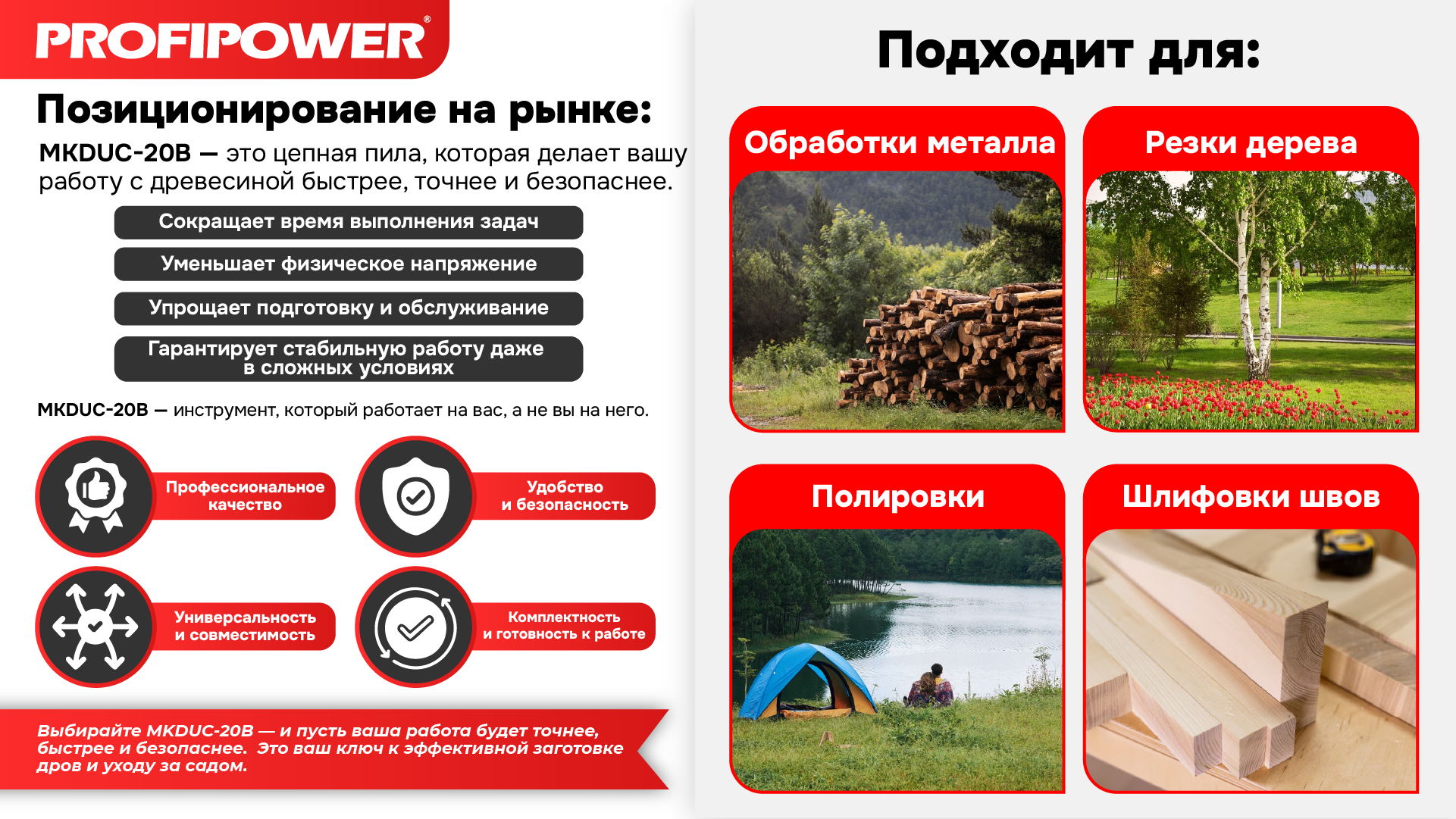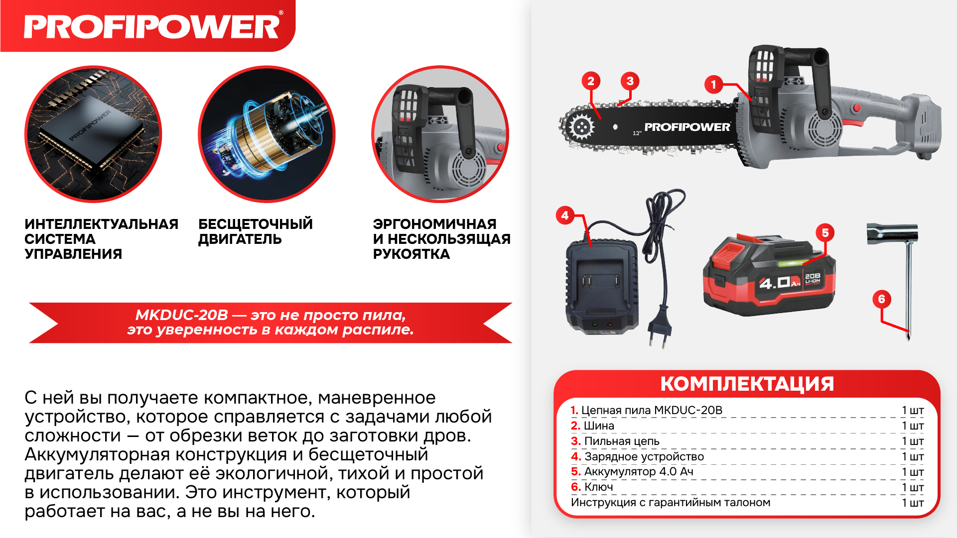 ProfiPower MKDUC-20B – ваш ключ к эффективному уходу за садом и быстрой заготовке дров.