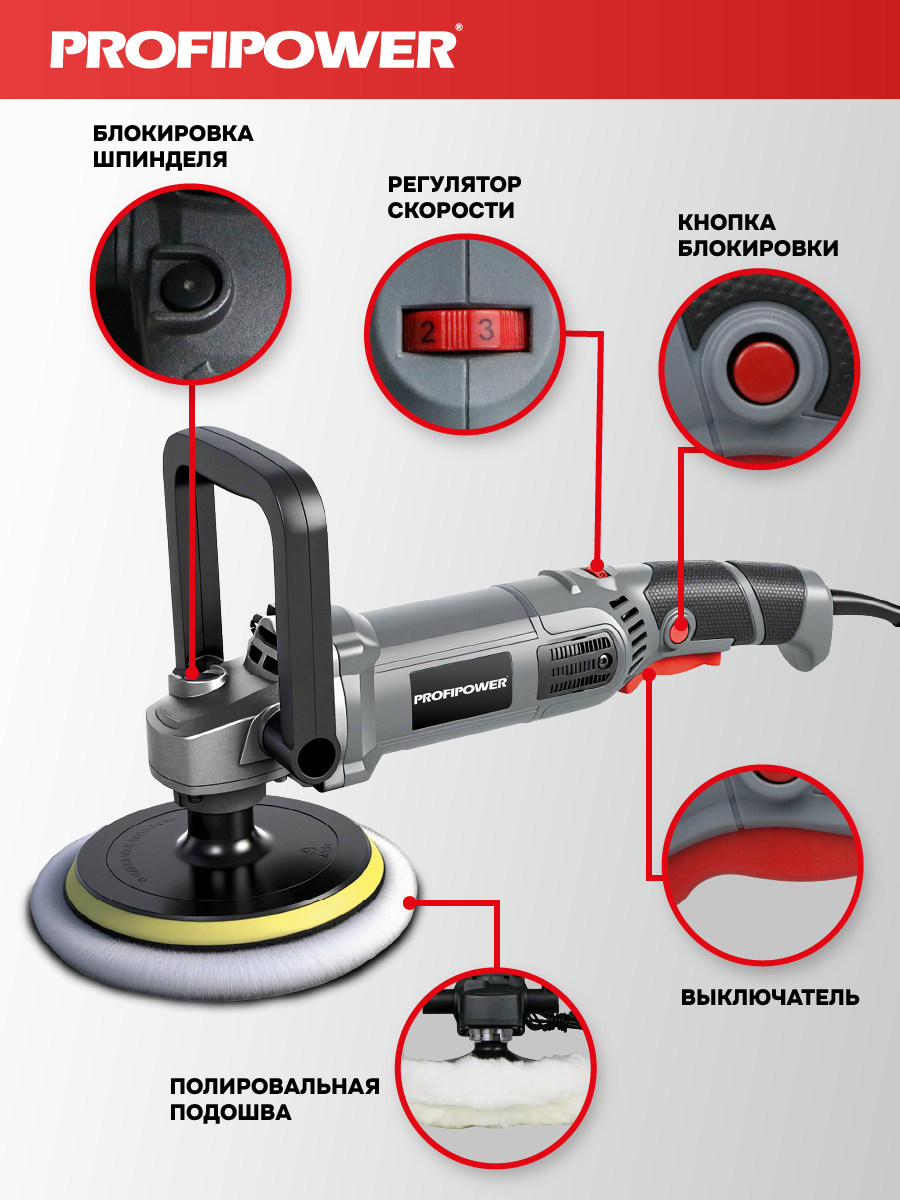 Полировальная шлифмашина PROFiPower E0303 УПМ-180 — профессиональная шлифовальная машинка для авто и ремонтных работ