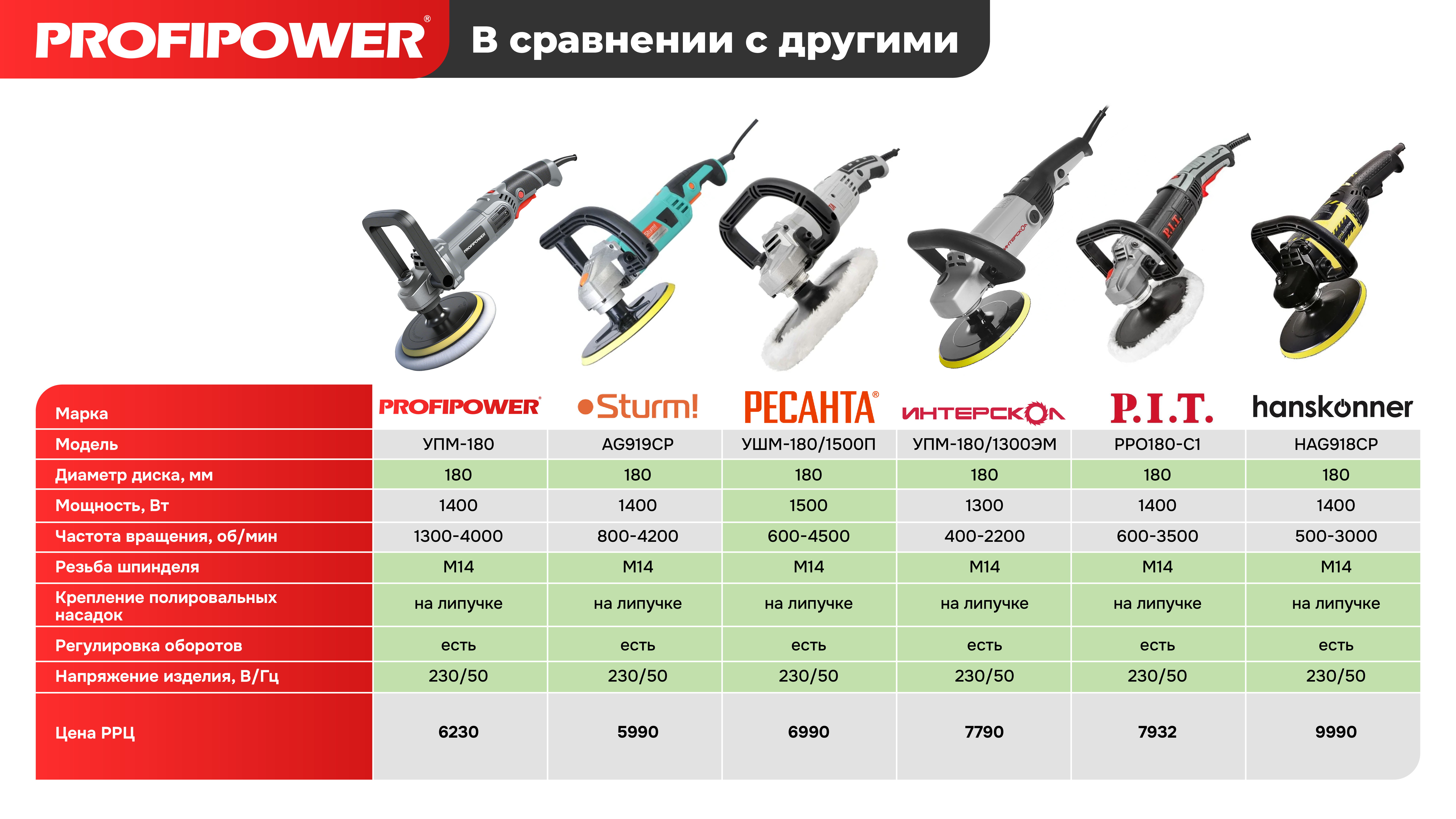 Обеспечьте себе качественный инструмент для полировки и шлифовки! Заказывайте шлифмашину PROFiPower E0303 УПМ-180 прямо сейчас и делайте ремонт и полировку проще и быстрее!