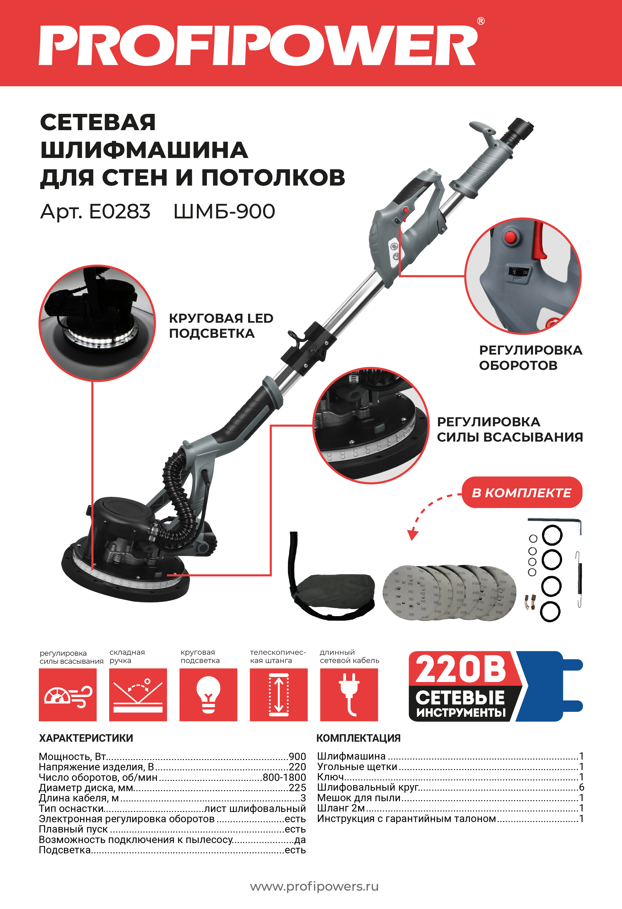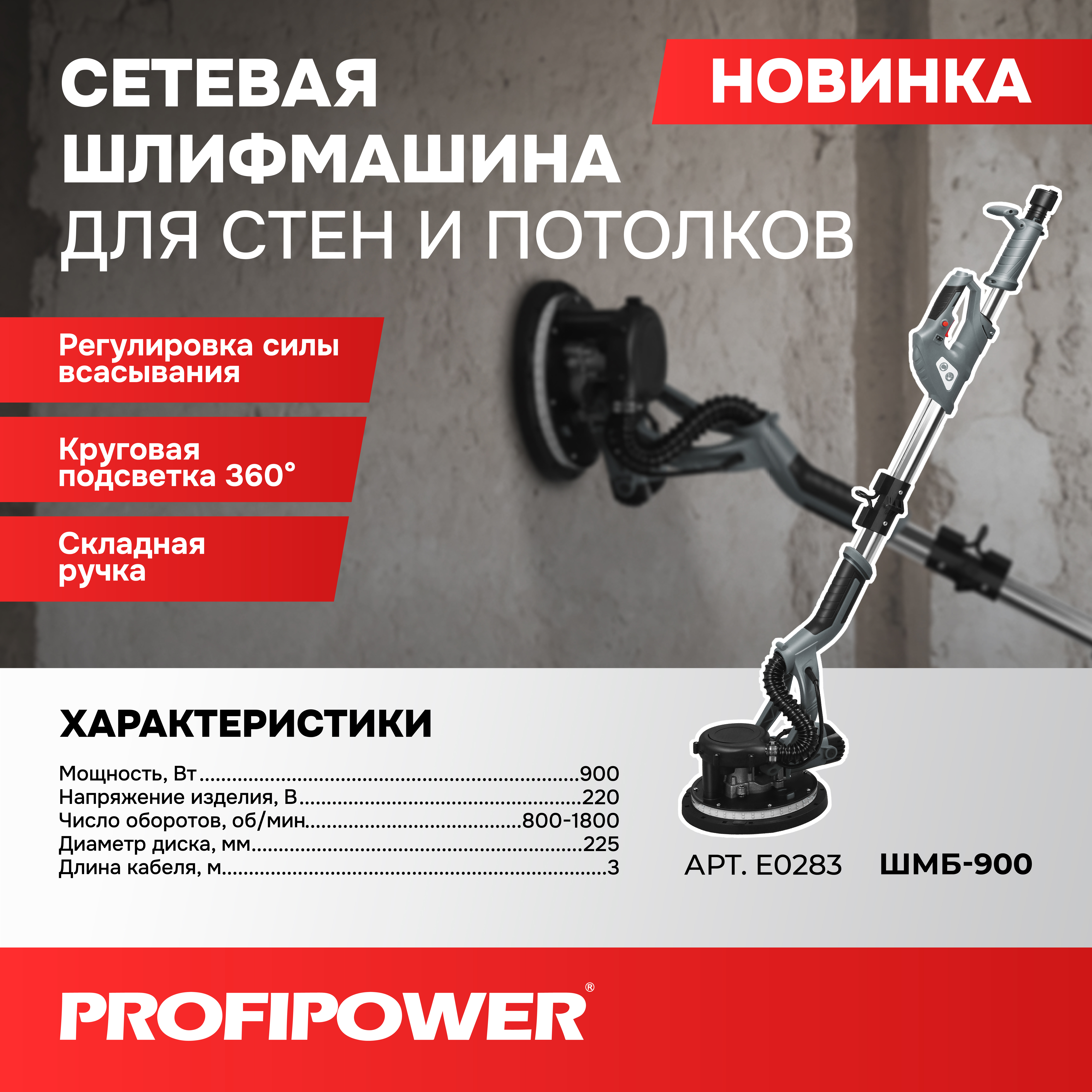 Шлифмашина для стен и потолков PROFIPOWER ШМБ-900 — профессиональный инструмент для идеальной отделки!