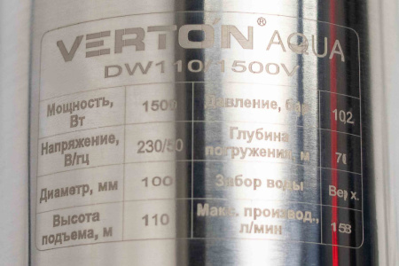 • Удобная эксплуатация. Благодаря малому диаметру насос Verton DW110/1500V, легко устанавливать в скважину.