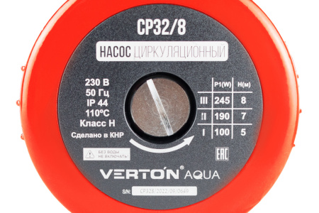—Циркуляционный насос Verton AQUA CP32/8(Мощн.245-190-100Вт, 230 В//50 Гц,Q max 180-90-50л/мин,H max 8-7-5,монтаж.дл.180мм,подкл.59мм, медн. обмотка)