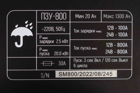 Мощные зажимы, изолированные термопластичной резиной, обеспечи- вают надежный контакт и безопасность оператора. Режим форсирован- ного заряда по таймеру и функция Boost позволяют быстро восстановить работоспособность разряженной батареи.