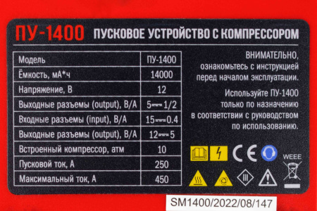 • пусковое устройство ПУ-1400 со встроенным компрессором